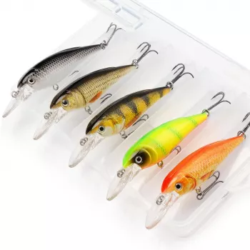 5PCS 3.1in 0.4oz Black Minnow Fishing Lures Floating Crankbait Set with Box