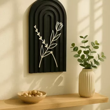 Black Arch Botanical Wood Wall Panels