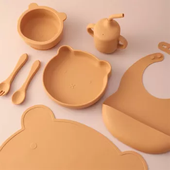 Color Kids 7PCS Silicone Baby Feeding Set with Suction Plate, Bowl, Cup, Utensils, Bib, and Placemat
